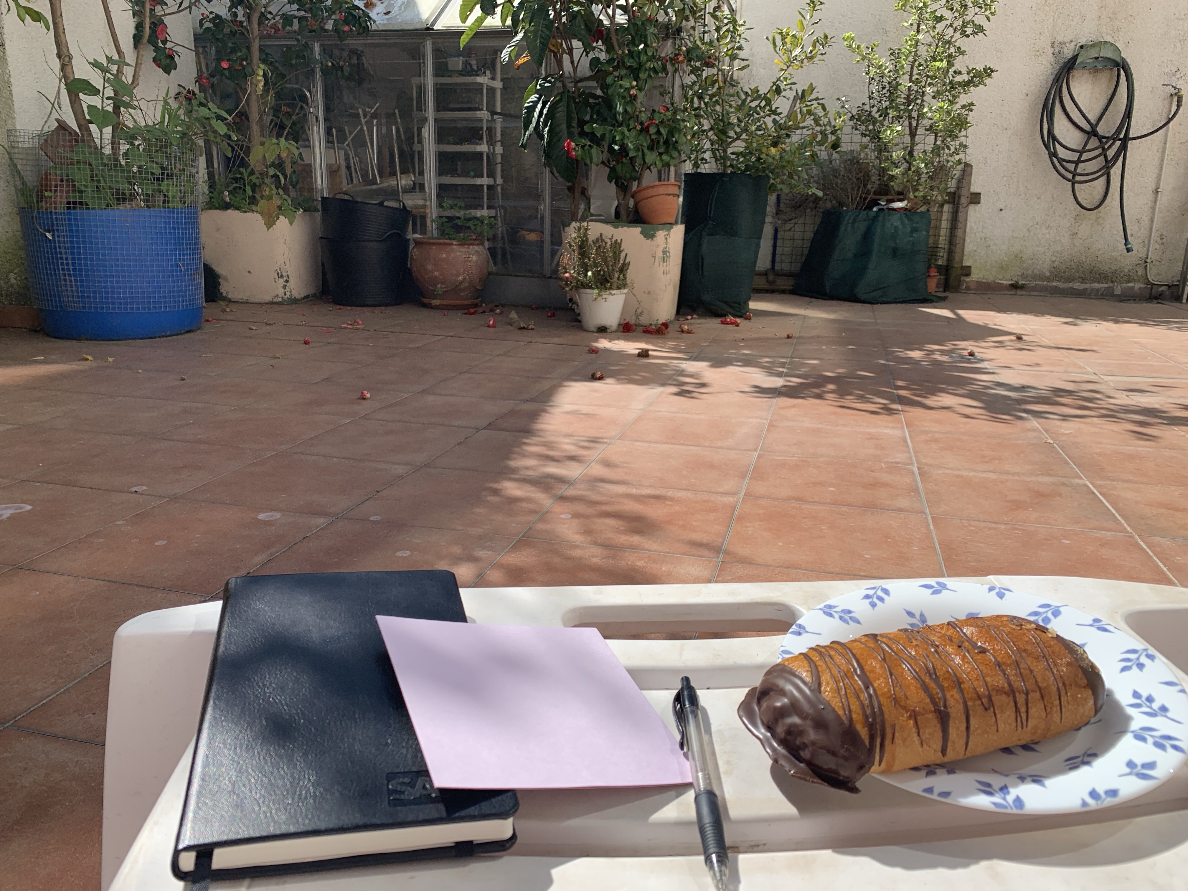 Tuesday, 3/24: today was a good day, but nevertheless a difficult one. It was gloriously sunny (perhaps Galicia’s parting gift to me, for now) and I once again had a lot of terrace time. I had a few final things to pick up at the store/pharmacy, so I donned my gloves and made a quick run, taking the trash with me as I went. On my way back, I stopped at my favorite little neighborhood bakery around the corner from my apartment. I stop here every Thursday to get myself a little treat for making it through the week/celebrate the week, and I got my usual order (a napolitana, of course) and some fresh bread. The bread lady was SO SAD when I told her I was leaving tomorrow and she actually teared up, which made me so sad as well. How I will miss these little things and interactions!